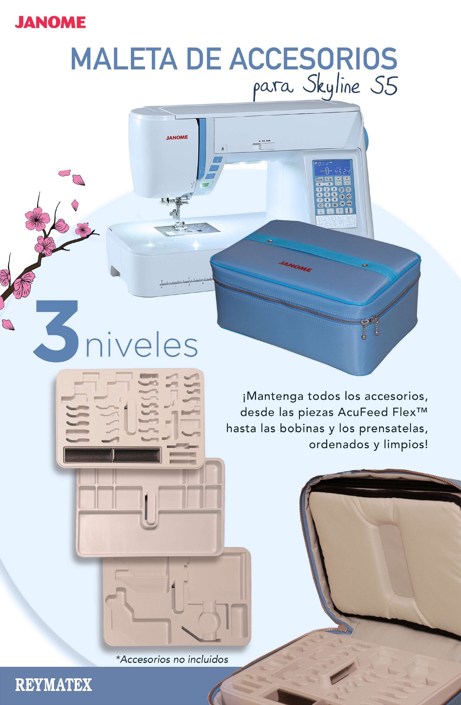 El precio original era: 84,24 €.69,95 €El precio actual es: 69,95 €.MALETA DE ACCESORIOS PARA LA JANOME SKYLINE S/3,S/5,S/7 y S/9. JS30020