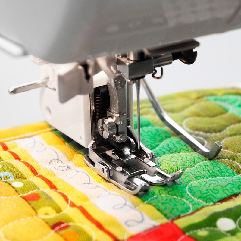 - Doble altura del prensatelas (facilita la colocación de capas altas de telas y guata)