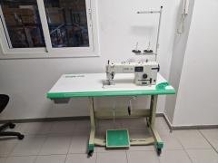MAQUINA INDUSTRIAL DE PESPUNTE DE PUENTE LARGO DE 1 AGUJA. COMPLETA MONTADA CON BANCADA DE RUEDAS Y TABLERO DE 120X54CM.