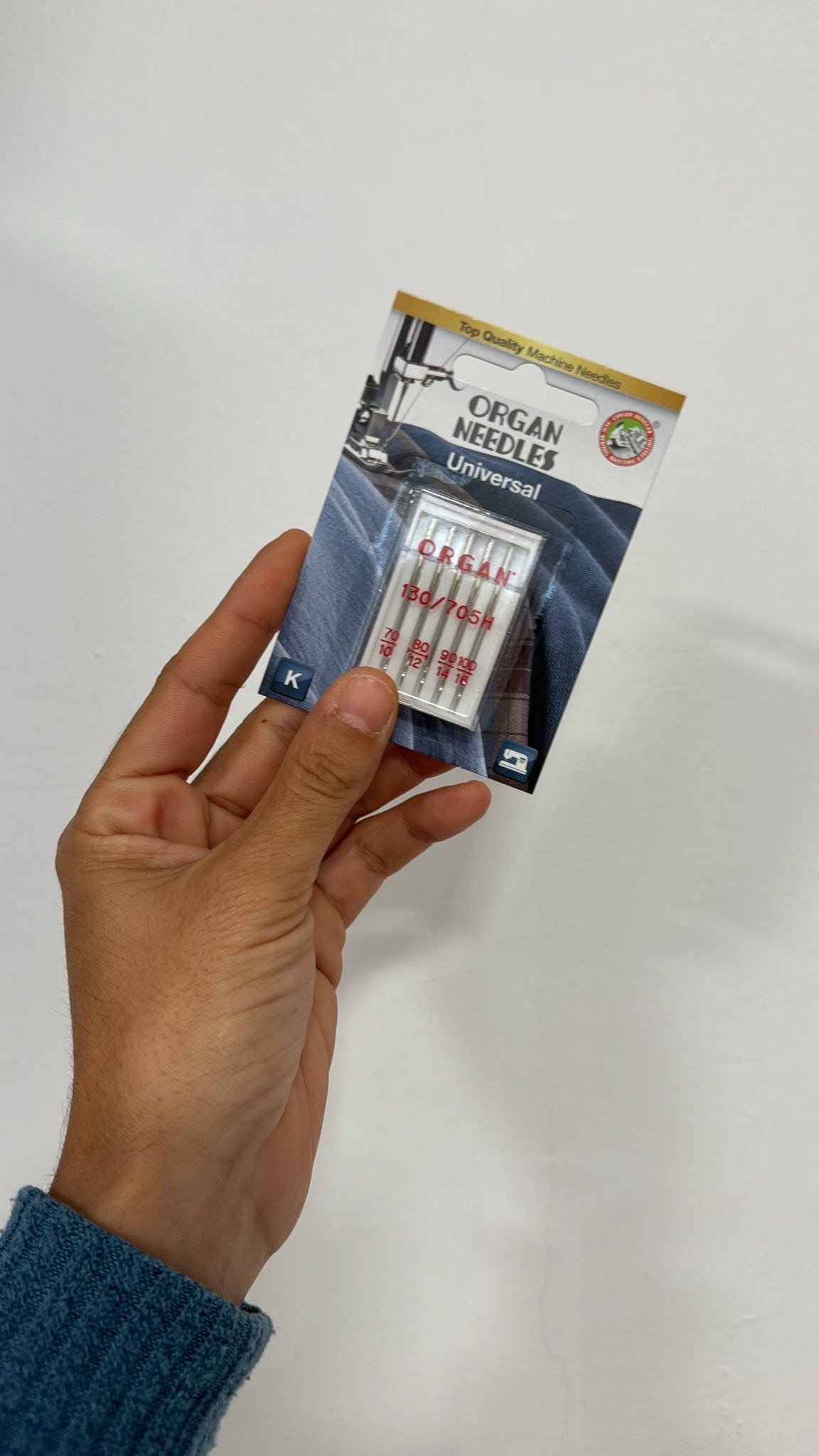 1 blister de agujas para maquina de coser domestica talon plano marca Organ de diferentes grosores.