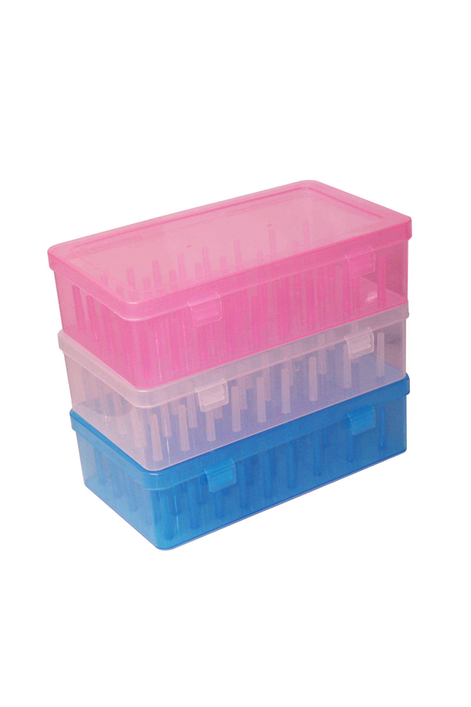 Caja de plástico con 42 soportes para organizar y almacenar los hilos.