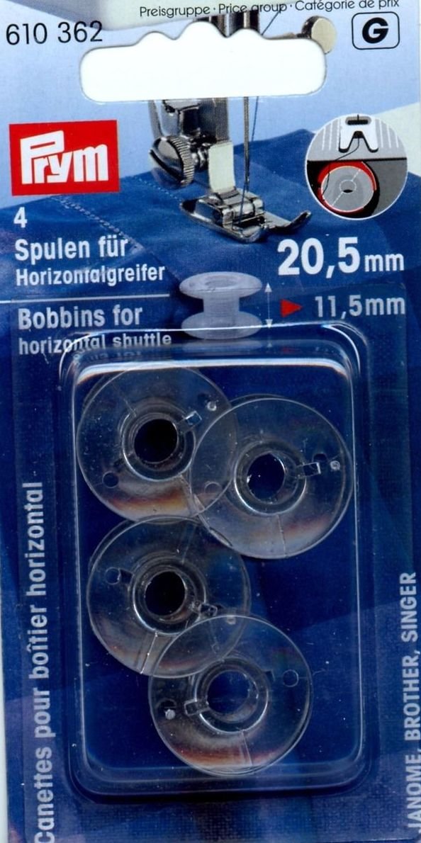 Para ser colocado horizontalmente desde arriba en la máquina de coser; sin cápsula.