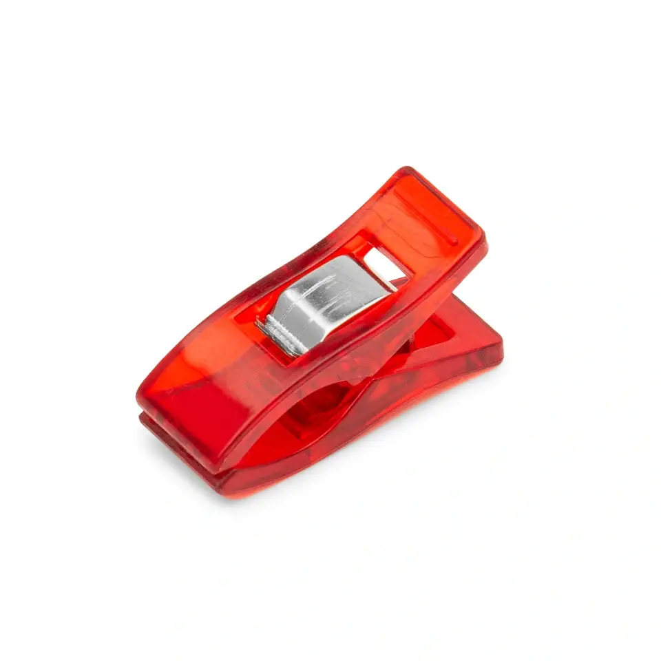 Estos clips para tela ofrecen una excelente alternativa a la fijación con alfileres convencionales. Estos clips para tela son especialmente adecuados para tejidos en los que se pueden ver continuamente pinchazos, como por ejemplo hule o cuero. Gracias a los clips para tela, el material se fija fácil y rápidamente, pero no se daña. También ofrecen un soporte firme al grapar varias capas de tela y son ayudas ideales para fijar bordes de colchas. Los clips para tela rojos, fabricados con plástico de alta calidad, hacen que fijar la tela con alfileres sea aún más divertido.