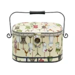 No pasará por alto el aspecto original del gran y bulboso costurero Kyoto. La funda de algodón azul marino con su moderno diseño geométrico contrasta marcadamente con el asa y los laterales en un llamativo rojo. El interior del costurero también promete mucho: el generoso interior rojo ofrece mucho espacio para guardar sus cosas de costura y su inserto de plástico extraíble con siete prácticos compartimentos ofrece suficiente espacio para guardar pequeños artículos de mercería, como dedales o bobinas de hilo. En el interior de la tapa se encuentra un alfiletero y dos bolsillos de tela para accesorios adicionales como cintas métricas, bolígrafos y mucho más. En definitiva, si valoras el diseño elegante, no pasarás por alto esta pequeña joya.