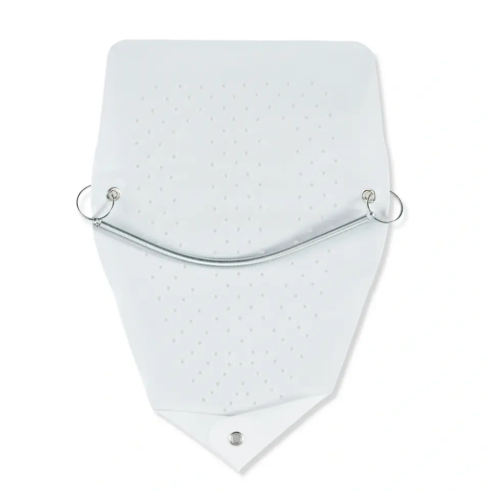 Para planchar tejidos estampados y textiles sensibles al calor, incluso en la posición más baja, la gama Prym ofrece el zapato de plancha de silicona blanca. Mitiga el calor, evitando que el tejido desarrolle un brillo superficial y otros efectos secundarios indeseables debido a un calor demasiado intenso. La película tiene muchos agujeros, que son suficientes para permitir que escape el vapor. Un resistente resorte de acero asegura el zapato a la plancha.