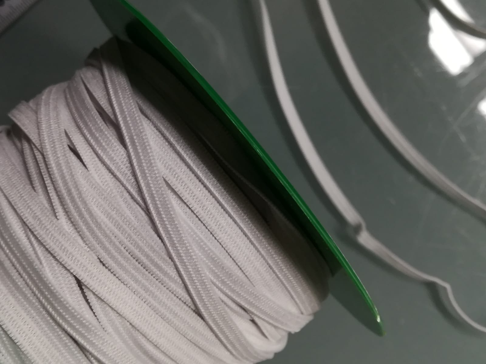 Goma Blanda de 0,5 mm, en rollo de 50 metros, especial para fabricar mascarillas.