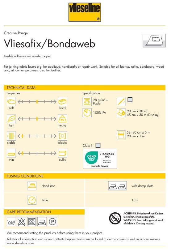 • Guata gruesa para aplicar con plancha• Fácil de trabajar• No se resbala al coserCondiciones de fijación