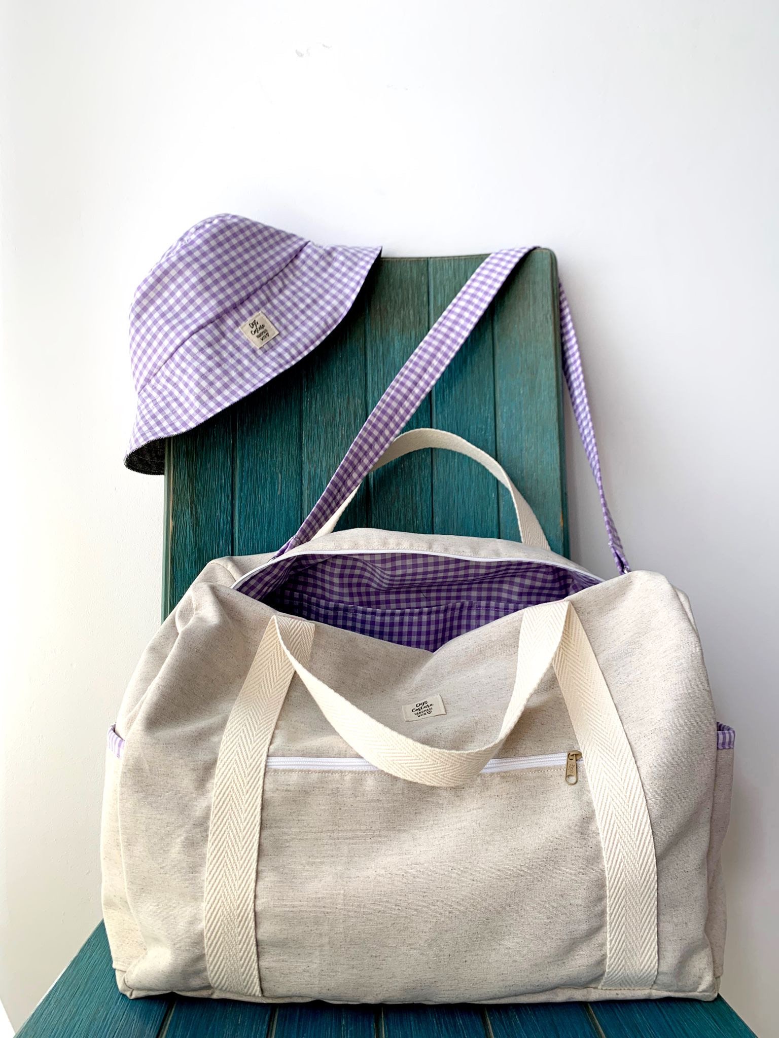 KIT BOLSO BARCELONA VICHY ALGODÓN EN LILA