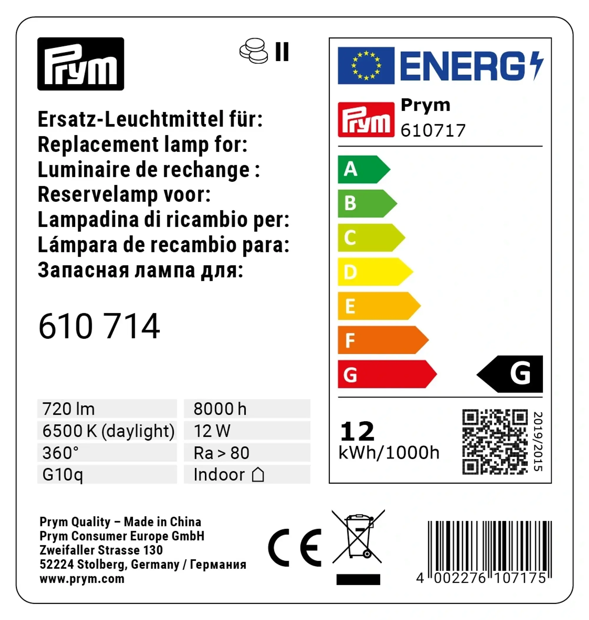 LÁMPARA DE RECAMBIO PARA LUPA CON LÁMPARA PRYM 610716