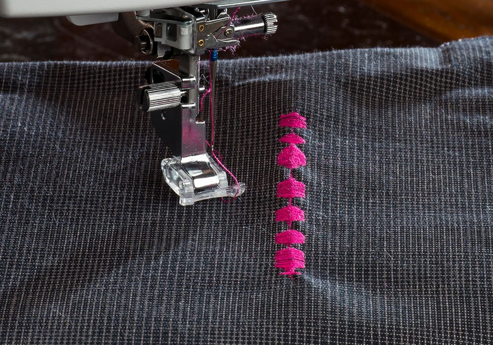 Cosa puntadas de hasta 9 mm de ancho: el ancho adicional hace que todas sus puntadas decorativas sean más atrevidas, brillantes y distintivas.