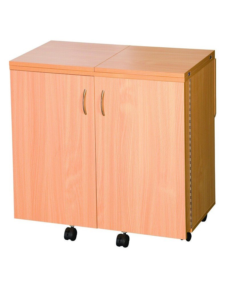 Ideal para las costureras que desean tener todo en un mismo sitio gracias a su sistema compacto. La mesa se abre para mostrar un espacio de costura más accesible y funcional. La superficie tiene un acabado resistente al desgaste. Completamente ensamblada. Se sirve el mueble montado y a portes pagados.