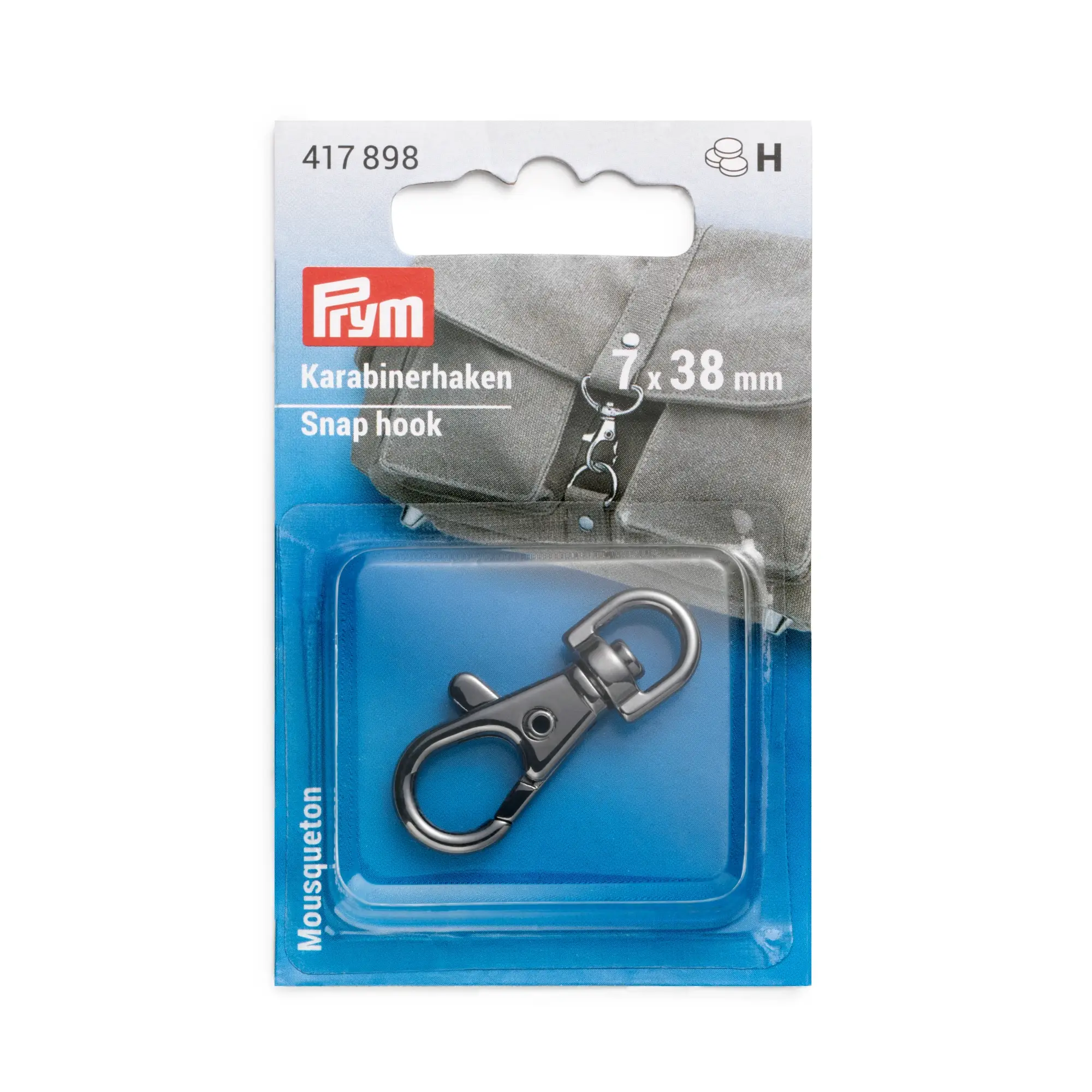 El mosquetón de Prym impresiona por su aspecto atractivo y es especialmente versátil. Es adecuado para sujetar simplemente asas de bolsos o sirve como cierre para bolsos, mochilas, bolsas, bolsas de deporte, bolsas de pañales y mucho más. Debido a sus formas redondeadas, también es adecuado para fines decorativos, p. B. como un elegante llavero, un verdadero punto de atracción. El mosquetón está hecho de acero inoxidable de alta calidad y convence por su mecanismo de bloqueo fiable y sin fricción. Su superficie sin rebabas está cepillada, por lo que el mosquetón completa cada diseño de bolso como una práctica pieza de joyería.