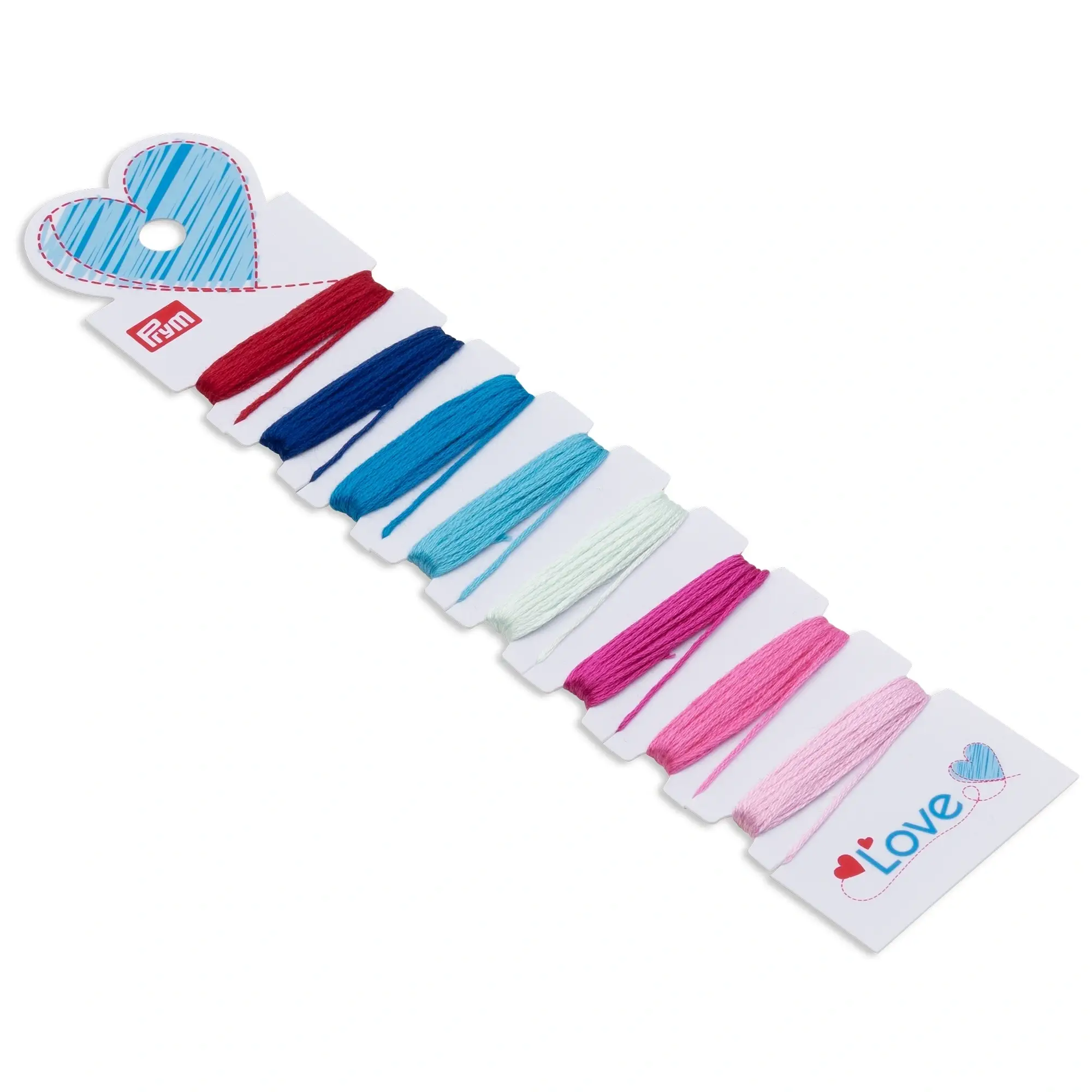La tarjeta reutilizable para envolver hilos de la serie Prym Love es una ayuda práctica para realizar proyectos de bordado más pequeños y creativos. La tarjeta de plástico blanco sólido contiene ocho hermosos colores que no ponen límites a la realización de ideas de bordado individuales. Cada dos metros de largo, los hilos consisten en seis finos hilos individuales que se retuercen para formar un hilo de bordar y que se pueden separar fácilmente entre sí para un trabajo más fino. Están confeccionadas en 100% algodón y cuentan con la certificación Oeko-Tex. Si se agotan los hilos, la tarjeta de bobinado de hilo se puede reutilizar fácilmente para las madejas de hilo sobrantes. Esto también garantiza una visión general óptima de los colores y calidades del hilo para el próximo proyecto de bordado.