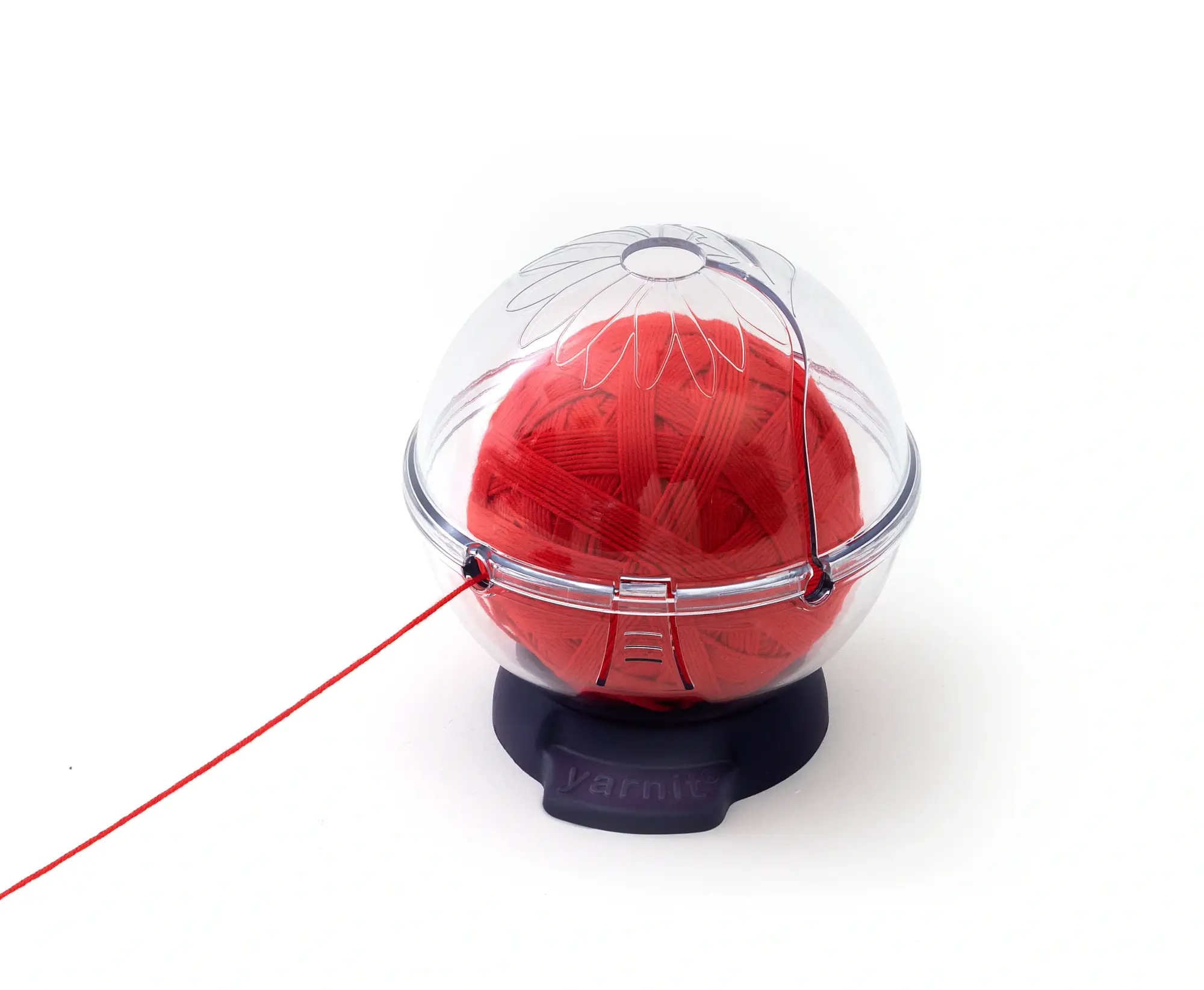 Apertura completa del ovillo transparente para retirar el ovillo durante el proceso de tejido
