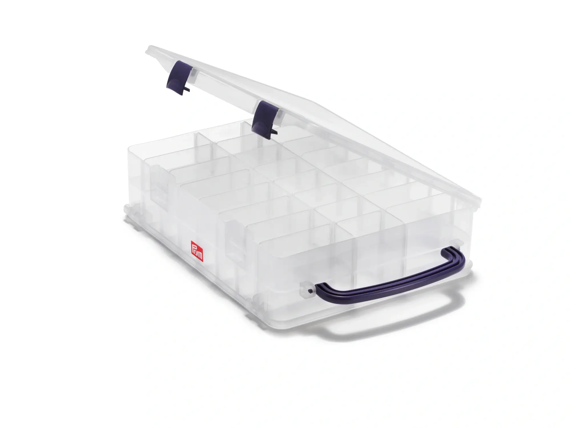 Esta práctica caja ofrece un alto grado de claridad en el almacenamiento de bobinas de hilo. Los compartimentos, 48 en total, ofrecen el espacio perfecto para bobinas de hilo disponibles comercialmente y las paredes divisorias extraíbles se pueden ajustar de manera flexible para adaptarse a cada necesidad individual. Se abre en ambos lados para garantizar un acceso rápido al carrete de hilo requerido. Los carretes de hilo se almacenan sobre sus lados, lo que significa que los colores son inmediatamente visibles a través del plástico transparente. Si quieres mantener ordenados tus carretes de hilo y al mismo tiempo protegerlos, esta robusta caja con su asa violeta oscuro y cierres seguros te encantará.
