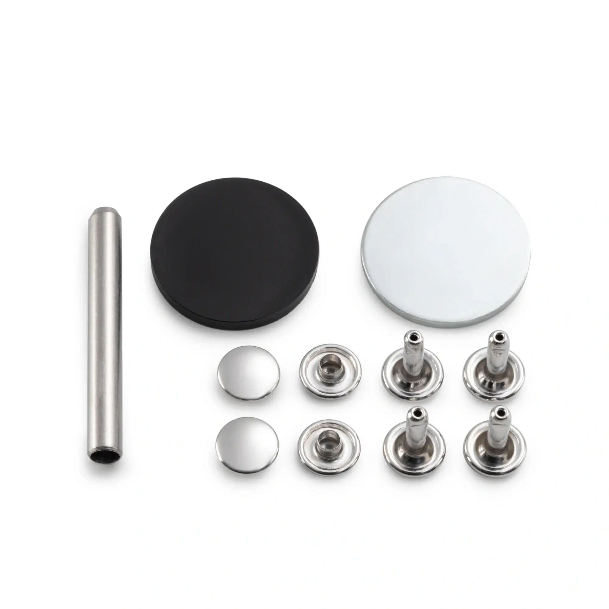 Los remaches tubulares Prym están disponibles en diferentes tamaños y, por lo tanto, son adecuados para diferentes espesores de material. Las diferencias aquí están en el diámetro de la cabeza y en la longitud del pasador interior. Cuanto más alta sea la pluma, más gruesos serán los materiales, como B. cuero para ser remachado. Además de los remaches tubulares, el paquete también contiene la herramienta adecuada, por lo que todo lo que necesita es un martillo para trabajar los remaches tubulares. Los remaches tubulares están hechos de latón plateado inoxidable y ofrecen resultados visualmente limpios para cada área de aplicación. ¡También disponible en un práctico multipack!