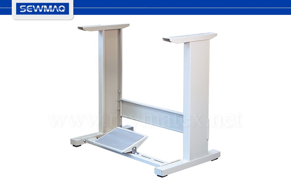 Bancada en forma de H con ruedas pequeñas regulable en altura para máquina de coser.