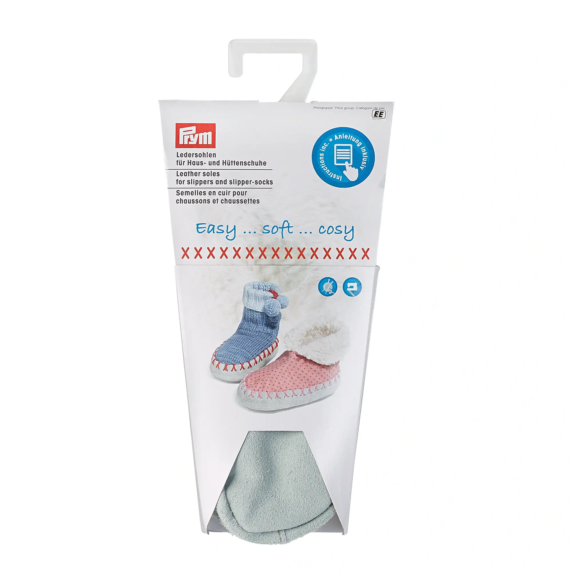 Cualquiera que le guste tener los pies calientes disfrutará de esta cualidad. Las suelas de las pantuflas y los zapatos de cabaña están hechas de cuero de alta calidad y son muy resistentes. En el interior, la suela está forrada con un suave tejido afelpado, que también garantiza una agradable experiencia de abrazo. Además de las suelas de cuero, el empaque contiene un patrón para tres tallas de zapatos: las suelas de cuero están disponibles para las tallas de zapatos 18 a 41. Aquí se integra una guía paso a paso claramente ilustrada, así como instrucciones de tejido para la producción de pantuflas y zapatos de cabaña. Dado que la variante de tejido se trabaja con una aguja de tejer circular, también es adecuada para principiantes: no se requieren agujas de doble punta. Alternativamente, si su media de lana gruesa favorita se va a convertir en una pantufla, se puede coser una media confeccionada en la suela.