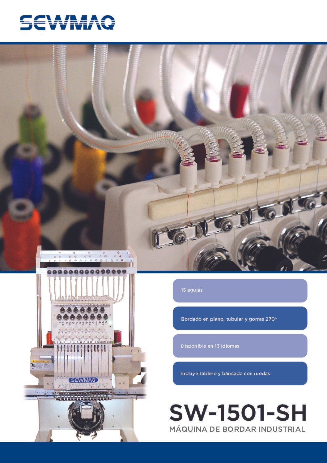 equipada con 1 cabezal y 15 agujas con la velocidad