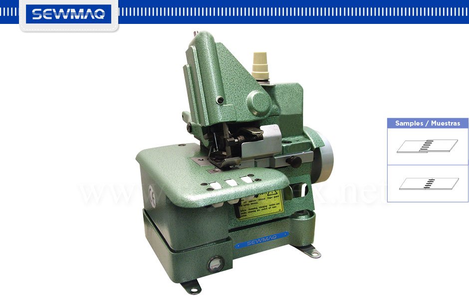 Máquina de 2 agujas de doble cadeneta, recubre por abajo con cortador delantero para aprovechar retales de género para confeccionar pasadores de pantalón.