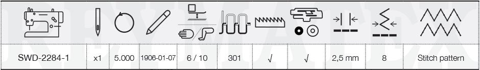 Máquina de 1 aguja de zigzag 1 puntada y 3 puntadas de alta velocidad equipada con motor servo en el cabezal. Velocidad máxima: 5.000 PPM. dando una costura de alta calidad. Adecuada para coser ropa interior, género de punto, materiales elásticos (Lycra) así como ropa de hogar.