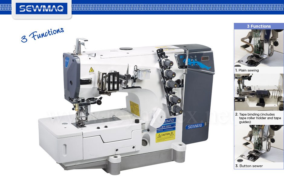 Máquina overlock de arrastre superior de 2 agujas y 4 hilos (2X4). Velocidad máxima 5.500 PPM.